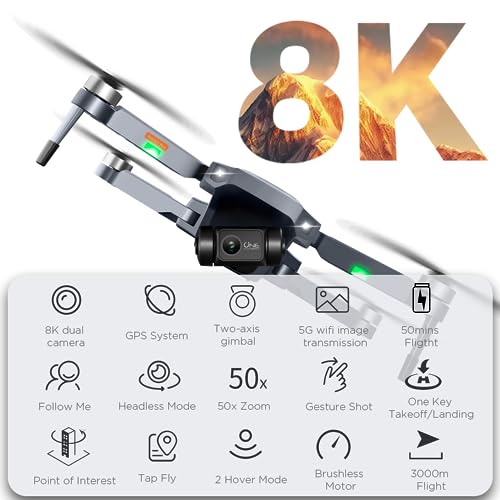 Specification: BAPHIYA GPS Drone with 4K Dual Cameras for Adults, 2-Axis Gimbal Foldable RC Quadcopter 5G FPV Brushless Motor Optical Flow Follow Me Auto Return 50 Mins Flight with 2 Battries Includes Carrying Case