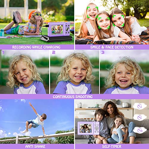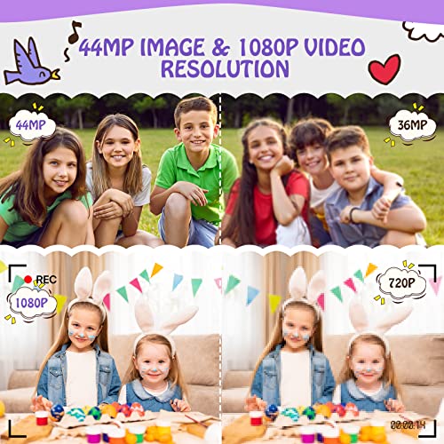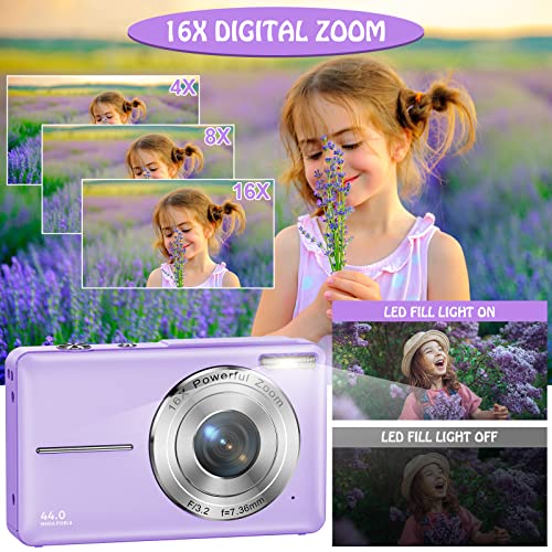 Compact Digital Camera 1080P HD 44MP Children’s Camera Rechargeable Digital Camera with 16X Digital Zoom for Children, Teenagers, Students, Adults, Beginners (Purple)