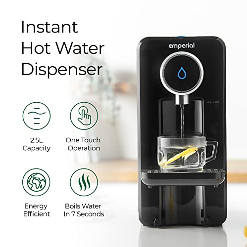 Specification: Emperial Instant Hot Water Dispenser Kettle, 2.5L Tank, Fast Boil, Easy Clean, Detachable Drip Tray – Black