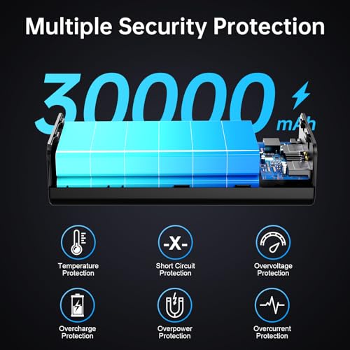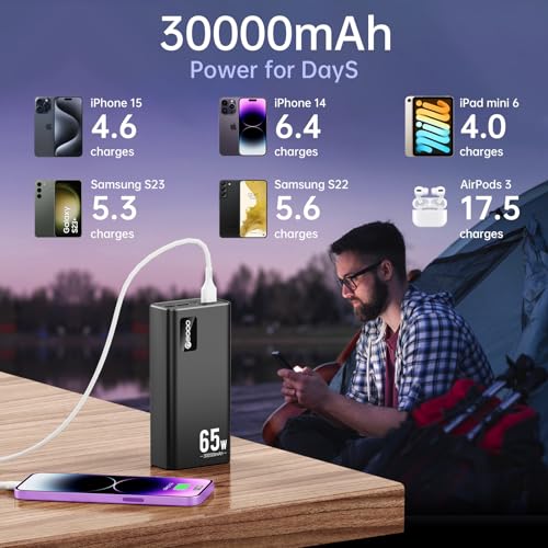 Laptop Power Banks 65W 30000mAh Fast Charging with 2 USB Outports and Type-C Power Pack LED Flashlights Compatible with Dell, HP, ASUS, iPad, iPhone,Samsung,MacBook