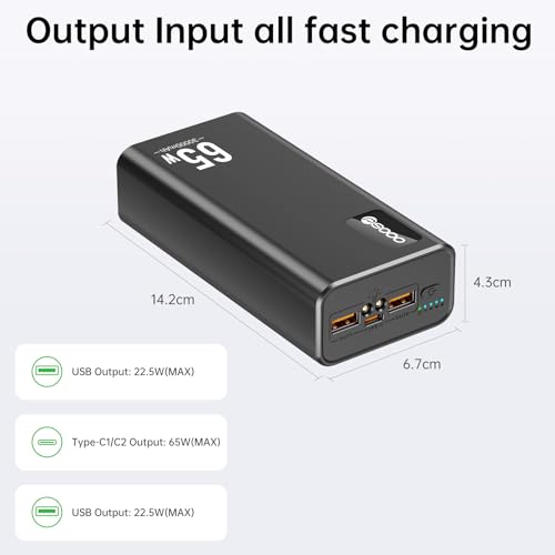 【65W Fast Charging Power】65W PD output means it can charge your MacBook Pro perfectly, just as good as the original charger. Provides enough power to charge laptops like MacBook/MacBook Pro/MacBook Air, also perfect Phones Power Bank