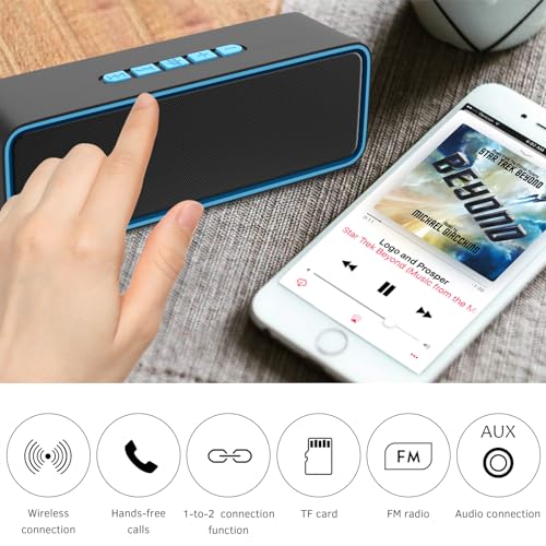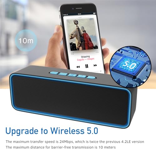 Sonkir Portable Wireless Speaker, Wireless 5.0 Mini Speaker with 3D Stereo Hi-Fi Bass, Built-in 1500 mAh Battery, Support TF Card and AUX (Blue)