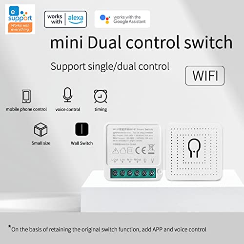 Specification: Woolley WiFi Smart Switch Module Mini Dual Control Switch Wireless Smart Relay Switch 16A 3500W For Home Automation Works With Alexa, Google Home and eWelink App, 4PCS