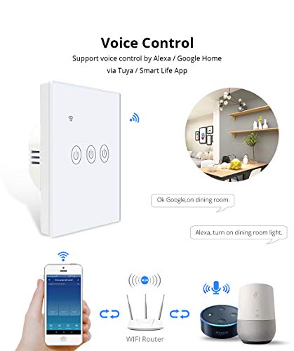 Specification: Yagusmart WiFi Smart Wall Light Switch, No Neutral Wire Required, No Hub Required, Compatible with Alexa and Google Home, APP Remote Control, Timing Function, Voice Control(3 Gang-Black)